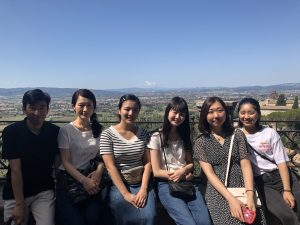アッシジは、聖フランチェスコの聖地として、また音楽を勉強している人にとっては作曲家リストと深く関係している町としても有名です。ペルージャからはバスで30分余りで来れるので、この機会に訪れない手はありません。この日にレッスンがある人は来れなかったのですが、たまたま私の生徒たちは全員レッスンがなかった日だったので、他の日本人仲間たちも誘って9人で参加してきました!